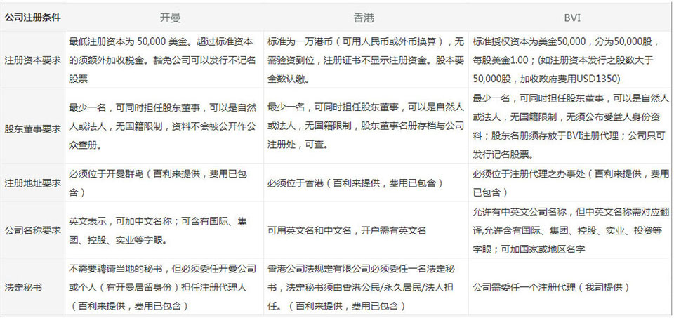 各離岸注冊(cè)地公司注冊(cè)條件對(duì)比: